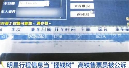 在知道这种方式可以赚钱后高铁售票员谢某20年开始与这位朋友合作,朋友接待谢某提供信息两人10元至50元一条的价格出售明星乘车信息,无锡市滨湖区人民检察院第一检察部副主任汪茂冒才表示销售明星乘车信息包含了乘车日期,购票日期,终点站,始发站,还有列车当天的班次号以及座位号,详细的信息全部都有。