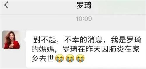 知名财经媒体人罗琦在生前发布的最后一条微信朋友圈动态内容中写到,自己的oura提醒自己发烧了。没有想到一场突然而来的肺炎,让这个女孩丢掉了生命,在离开人世时仅仅只有36岁。罗琦因为肺炎高烧不治身亡的消息是罗琦的母亲通过罗琦微信的方式通知给朋友们的,在消息被公布以后,立刻引起了整个财经圈内人士的关注。深蓝财经ceo涂劲军在微博平台内发文表示,这个消息对于自己来说太过于突然,在一星期之前罗琦还来到了自己的直播间内,而且当晚玩的都非常开心。